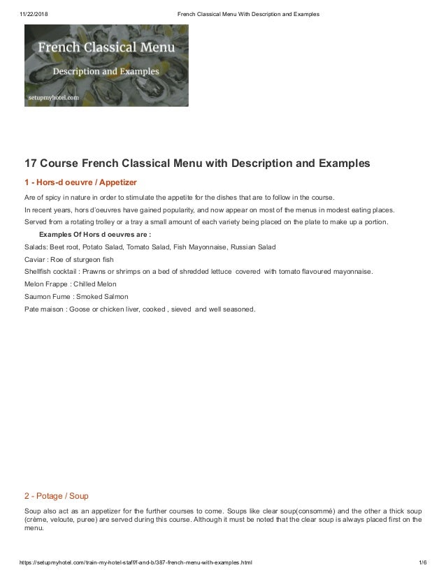 17 Classical Menu - Nouvelle's menus less extensive, smaller.