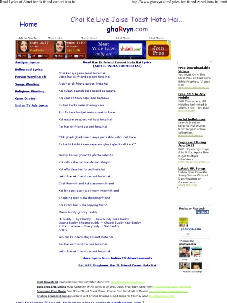 Airtel Friendship Song Lyrics Airtel Friendship Song Lyrics - If you're looking for the best taylor swift quotes and song lyrics about friendship, look no further.