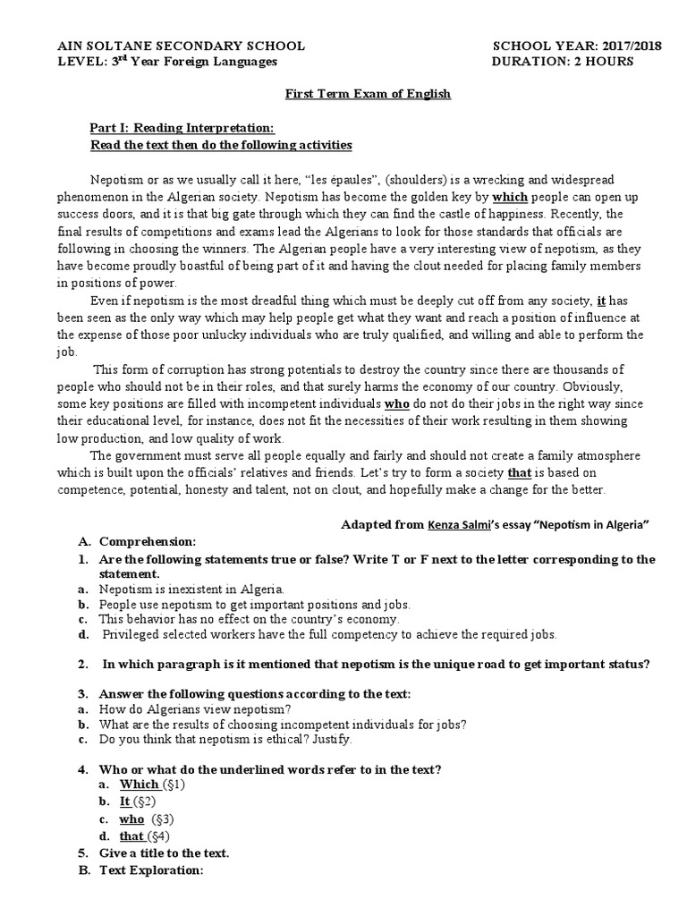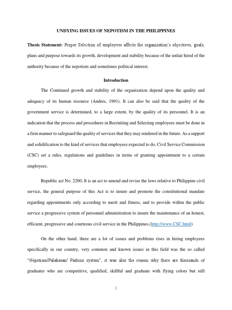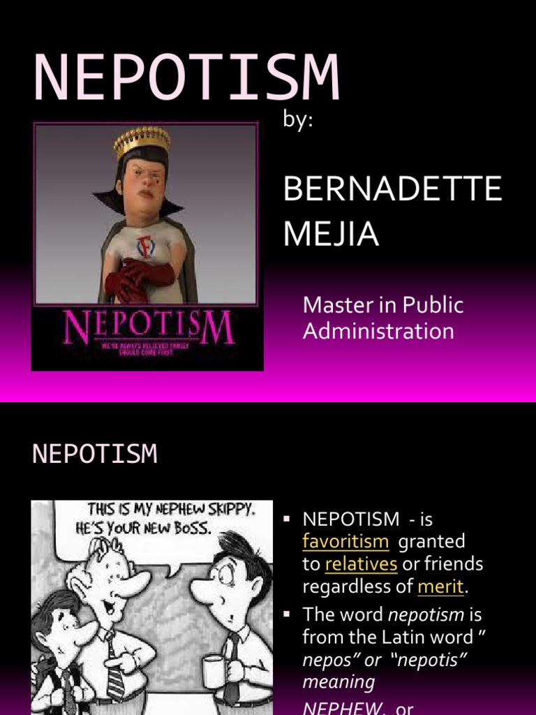 Essay Nepotism Essay Nepotism - Nepotism nepotism is favoritism shown by somebody in power to relatives and friends, especially in appointing them to good positions.