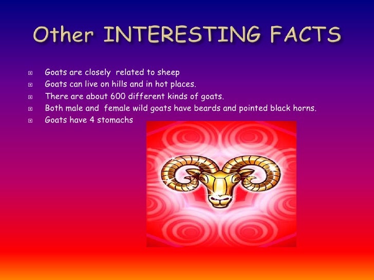 Interesting Facts About Goats And Sheep / Maybe for milk, hides/skin or meat, but the following facts are notable characteristic in a billy during the rut are an obsession with does/nannies, a goaty smell, frequent fights over female goats and poor appetite.