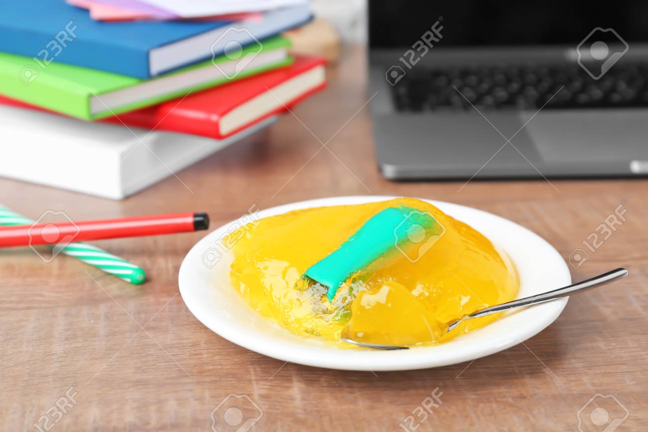 Plate With Jelly And Stapler On Office Table April Fool S Day Stock Photo Picture And Royalty Free Image Image 99529237 - Blue , green , red , white use scenario:
