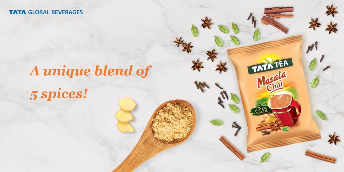 Tata Tea Masala Chai Tata Tea Masala Chai : Masala chai is an aromatic brew made by brewing tea leaves with crushed whole spices, ginger, and milk.